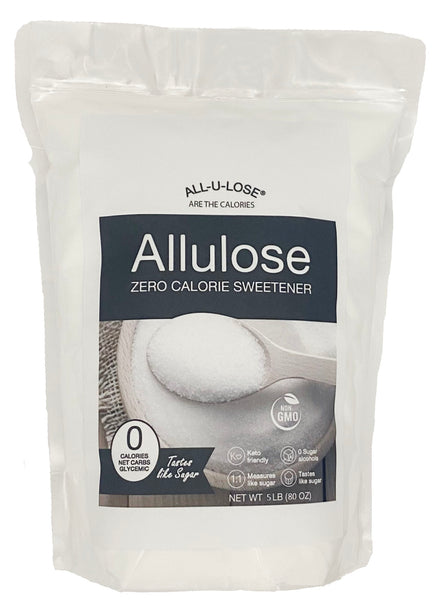 All-u-Lose are the calories! This ultra-low calorie natural sweetener is great for beverages, cooking and baking. Allulose is absorbed by the body but not metabolized; it suppresses the amount of sugar after a meal by reducing glucose transport to blood. Although 70–84% of the allulose you consume is absorbed into your blood from your digestive tract, it is eliminated without being used as fuel. Like glucose and fructose, allulose is a monosaccharide, or single sugar. In contrast, table sugar, also known as sucrose, is a disaccharide made of glucose and fructose joined together. Consumed in moderation, it's been shown to resist fermentation by your gut bacteria, minimizing the likelihood of bloating, gas or other digestive problems. However, as with any food, individual sensitives are always a possibility. For people who have diabetes or are watching their blood sugar — it does not raise blood sugar or insulin levels. Allulose also provides only 0.2–0.4 calories per gram, or about 1/10 the calories of table sugar. Allulose is about 70% as sweet as sugar, which is similar to the sweetness of erythritol. Allulose had more benefits than erythritol. In studies, less belly fat was gained with allulose. In another study, a high-sugar diet with either 5% cellulose fiber or 5% allulose. The allulose group burned significantly more calories and fat overnight, and gained far less fat. Enjoy the richness of sweets without the guilt or unhealthy effects.
