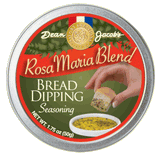 Dean Jacob's Bread Dipping Seasonings feature seasoning blends that capture the essence of four regions of Italy famous for their flavorful cuisine are captured in their distinct blends of seasonings: Traditional Sicilian Blend Rosa Maria with Rosemary & Garlic Tuscany Blend with Sun-dried Tomato & Basil Parmesan Blend with Roasted Garlic & Cheese. Dean Jacob's Bread Dipping Seasonings are presented in both Large (4 oz.) and Small (2.4 oz.), 4in1 Compartment Jars as well as Shaker Jars, Stacking Jars and Tins. (Some are Kosher) Add Dean Jacob's Cold-Pressed Extra Virgin Olive Oil for bread dipping or use these flavorful blends to enhance your favorite hot or cold recipes.